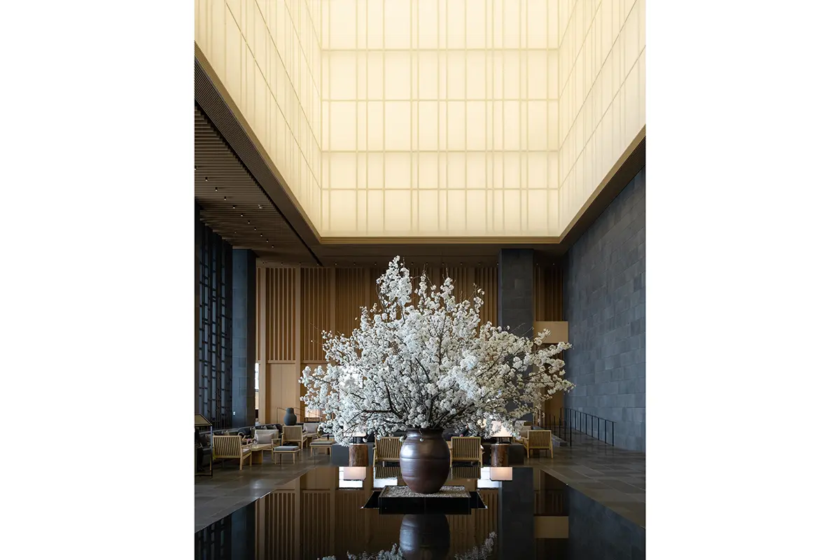 The hotel echoes Zen design. You only see one ikebana arrangement , tatami textures, a tea ceremony tray perfectly placed . These are cultural Japanese codes but they are never explained. You walk into a lobby and you can find a tokonoma holding a seasonal flower. The silence pondering in the air is not absence it is Japanese concept of ma – the space between things. To move seamlessly through the decor the cedar panelling walls recall mountain temples, the wash paper glows like cloud filtered light, the bath stone is the same used in Ancient Japan. A staff member walks silently, offers you a tea cup and bows wordlessly. This is not performance. It is cultural fluency, it reflects Japanese.