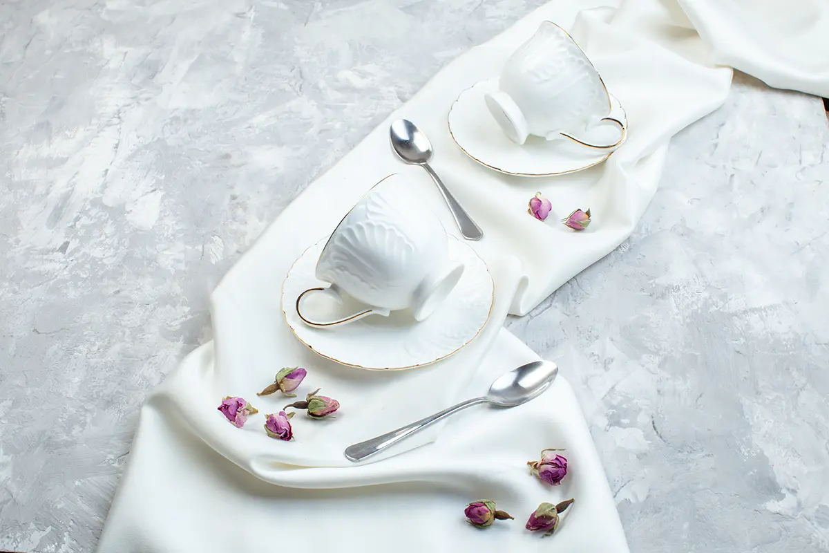 - Colour discipline :white cup –silver spoon wood or linen beneath.